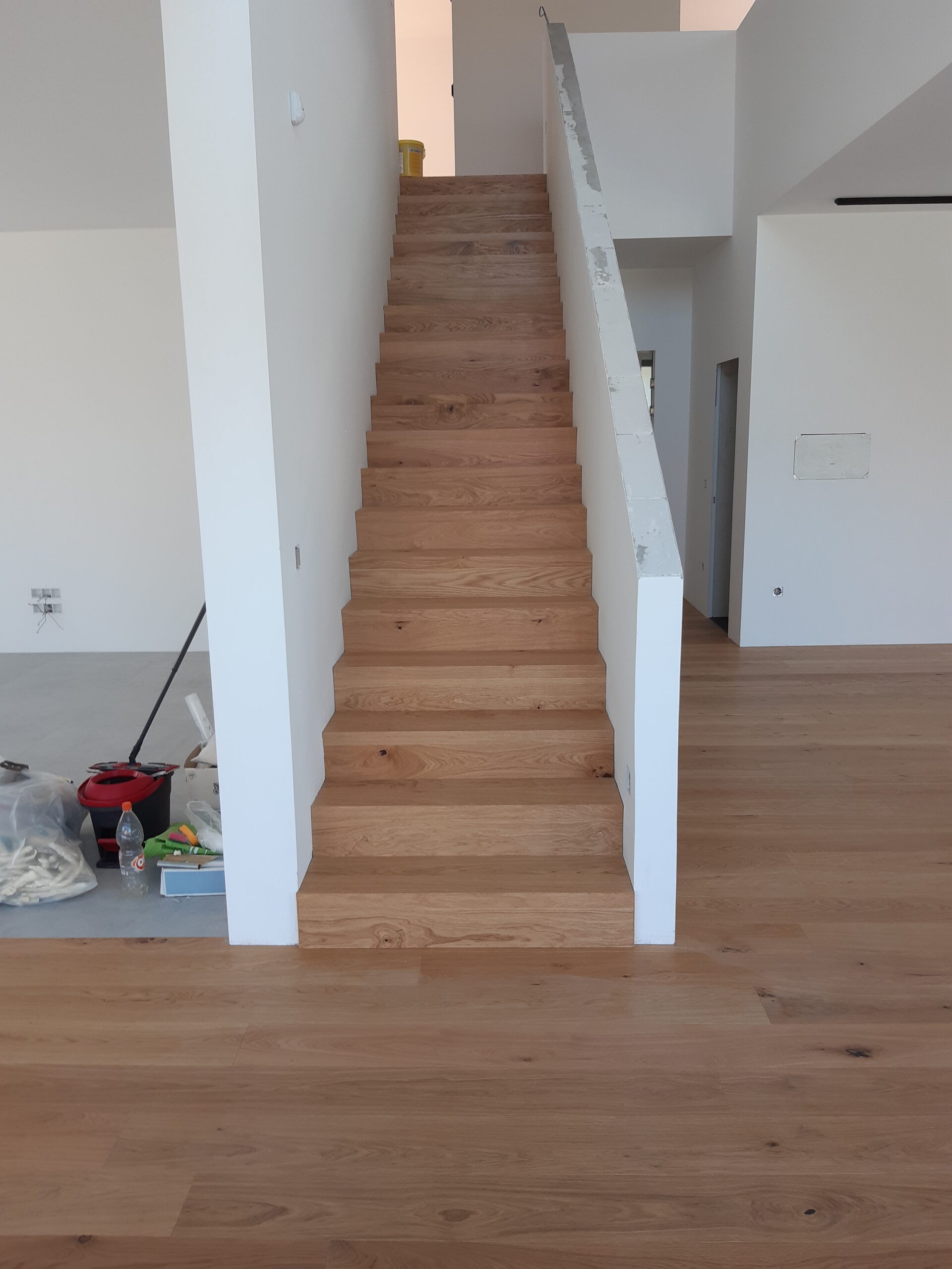 Je sestavljen iz manjših lamel. Najbolj poznana je postavitev v kocke (mozaik), poznamo še postavitev angleški vez in staronemški vez. Potrebno ga je naknadno brusiti, kitati, oljiti ali lakirati.